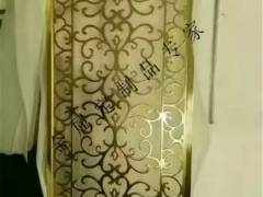 铝屏风优点: 1、图案丰富,效果逼真。 2、款式多样化,图案可根据个风格定做,尽显个性化。 3、铝屏风质轻、价廉。 4、铝屏风都是用铝板钻雕而成的,没有接口。 5、铝屏风还有一定的吸音效果。 6、铝屏风容易清洗和保养。 7、铝板的厚度必须在8mm以上才可以保持不锈钢变形 铝屏风色彩:玫瑰金、咖啡金、古铜、青古铜、钛金、黑钛。 铝屏风规格:来图定制。