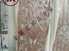 铝屏风优点: 1、图案丰富,效果逼真。 2、款式多样化,图案可根据个风格定做,尽显个性化。 3、铝屏风质轻、价廉。 4、铝屏风都是用铝板钻雕而成的,没有接口。 5、铝屏风还有一定的吸音效果。 6、铝屏风容易清洗和保养。 7、铝板的厚度必须在8mm以上才可以保持不锈钢变形 铝屏风色彩:玫瑰金、咖啡金、古铜、青古铜、钛金、黑钛。 铝屏风规格:来图定制。