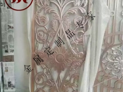 国式的屏风,特别是中式古典的铝屏风,把中国传统风格揉进现代时尚元素,既有现代的特色,又有古典的韵味,古色古香,别树一帜。不锈钢屏风充分结合了传统元素,民族风格,迎合现代的装饰要求,成为近年商业装饰中广受欢迎的铝制装饰品之一。它那丰富的内涵,多变的花型,精致的图案。最重要的是,它可根据每个消费者的要求而设计和制作,达到设计理念、装饰环境、消费观念的统一,符合多元化的消费与装饰要求。,外形美观,形象突出,面板随意组合,尽显创意,铝板雕刻镂空雕花隔断中式屏风花格将中式古典元素融合自然的装饰笔触下,符合相地立意的空间中给人带来惬意的享受,尊贵高雅。