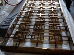 不锈钢屏风外观设计非常简洁大方,线条时尚,不仅设计独特,而工艺非常精湛。经过精加工产生的线条,方格、圆形、花纹等极具个性的几何图案,金属里映射斑斓色彩,既美观又时尚,高端大气上档次。