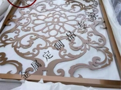 二:为不锈钢板材镂空而成的不锈钢雕刻屏风,选用板材为基材,然后采用等离子激光雕刻工艺雕刻成客户指定图案而成。
